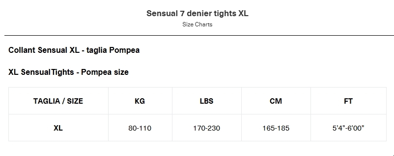 Upgrade your hosiery collection with these ultra-sheer 7 denier tights, designed to provide an elegant and barely-there effect. Their high-quality composition ensures breathability, a smooth matte finish, and ultimate comfort. The delicate bikini-shaped lace panty enhances femininity, while the invisible reinforced toes offer discreet durability. Ultra Sheer 7 Denier – Exceptionally lightweight, offering a natural, bare-leg look. Matte Finish – Ensures a smooth and velvety appearance for an elegant, invisible effect. Bikini-Shaped Lace Panty – Adds a sophisticated and sensual touch, providing support and comfort. Gusset for Comfort – Designed for improved fit, breathability, and durability. Invisible Reinforced Toes – Strengthened toe area for longevity without compromising aesthetics. Elastic & Adaptable Fit – Offers freedom of movement while staying comfortably in place all day. Ideal For: Warm weather wear (spring & summer). Special occasions, professional outfits, and everyday elegance. Those who prefer a barely-there feel with light coverage. Size XL - Fit Guide: Weight Range: 80-110 kg Height Range: 170-220 cm Hand wash at 30°C to maintain elasticity and softness.